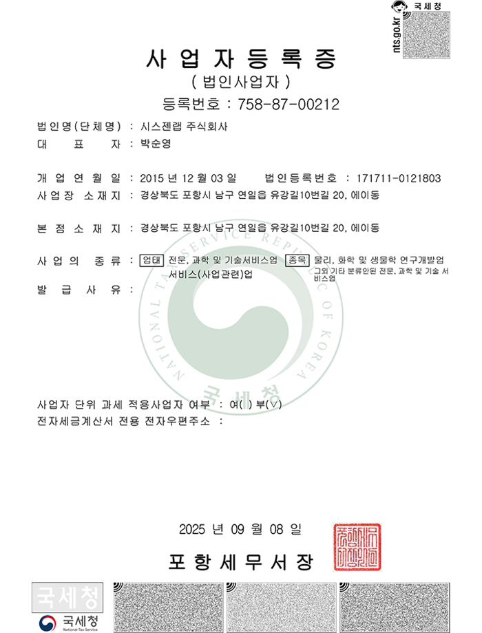 - 제 10-2697561 호 (2024년) 간암 진단을 위한 바이오마커 조성물